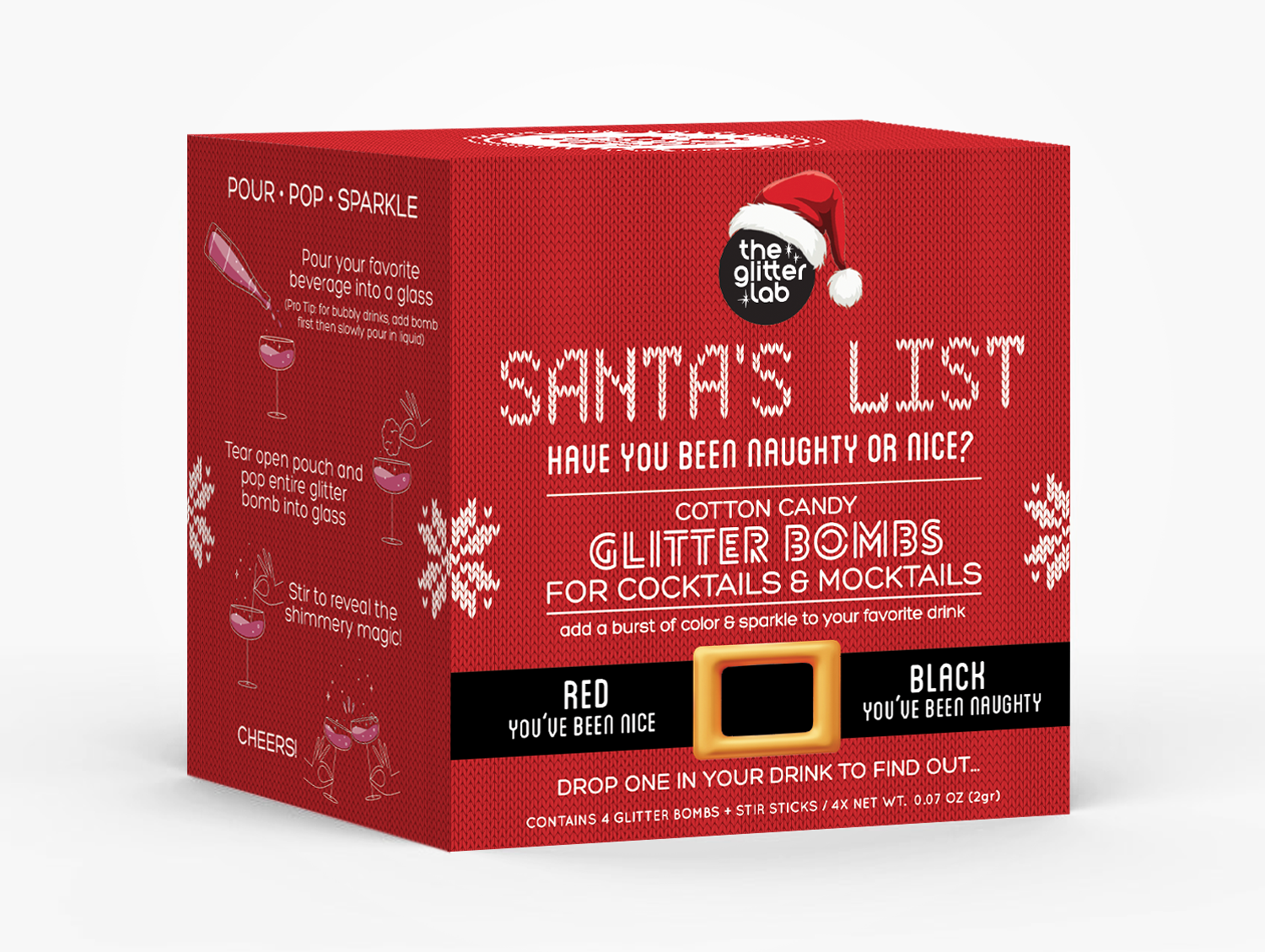 🎁 Are you Naughty or Nice? There’s only one way to find out! Drop in a Santa’s List Glitter Bomb and reveal your fate — if your drink turns Red, you’re on the Nice List! If it turns Black… well, looks like you’ve been a little Naughty! Either way, it’s a festive sip full of sparkle and fun! Perfect for parties, stocking stuffers, or anyone who loves a twist of surprise and sparkle in their season.